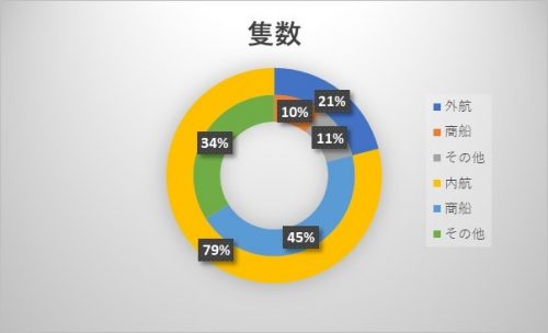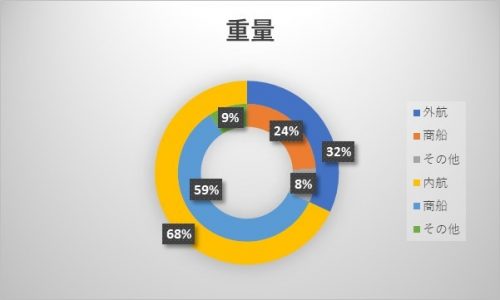 内航の商船重量は全体の59%で外航の商船重量は全体の24%なので、